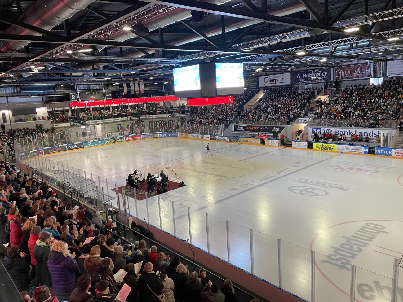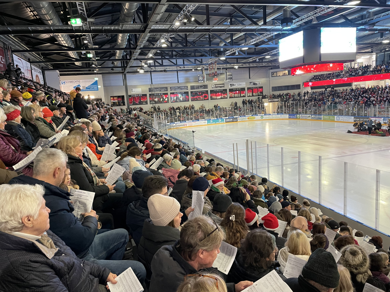 Das Weihnachtssingen im Landshuter Eisstadion ist am 22. Dezember erneut zu einem stimmungsvollen Höhepunkt im Advent geworden. Rund 2800 Besucherinnen, Besucher und Chorsängerinnen füllten das Stadion, sodass eine dichte, festliche Atmosphäre entstand. Bereits zum vierten Mal wurde das Stadion zum großen Singraum, in dem die Menschen nicht nur zuhören, sondern ausdrücklich zum Mitsingen, Mitsummen oder Brummen eingeladen waren.