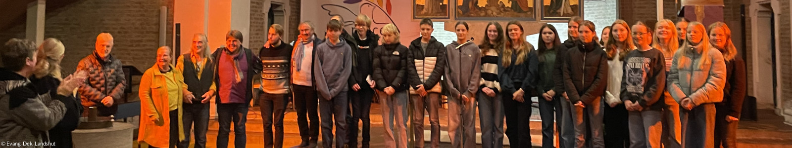 Die Christuskirche wurde in warmes Licht getaucht, die Band “Pieces of Peace” stimmt die rund 100 Gottesdienstbesucher*innen mit melancholischen Klängen ein und der Gottesdienst am Abend des Buß-und Betttages in der Christuskirche in Landshut beginnt.